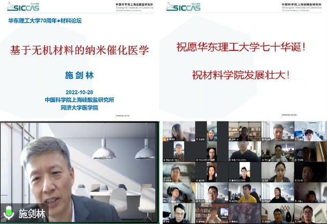 施剑林院士首先分享了团队早期在基于氧化硅纳米颗粒的药物靶向输运以及药物控释领域的科研历程和取得的系列颠覆性的成果;随后,讲述了近年来团队提出的“纳米催化医学”新概念,即不使用有毒药物,在肿瘤等病变部位产生细胞毒性分子,进而精准高选择性杀死肿瘤细胞的纳米催化体系。最后,还介绍了利用新型无机纳米材料的活性氧调控能力治疗类风湿关节炎以及骨质疏松等疾病的最新研究进展。报告最后,施剑林院士对华东理工大学70周年校庆表达了美好的祝福,也祝愿亚洲无码av