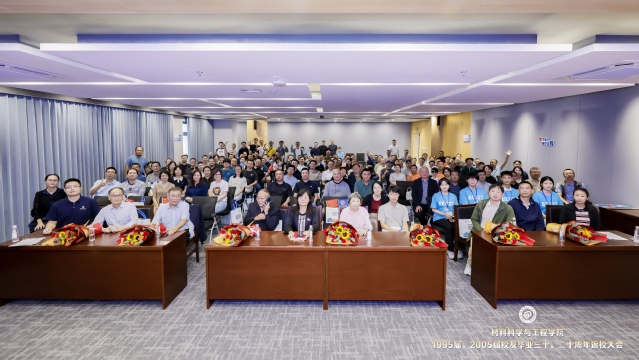 会上,师生和校友们集体合唱校歌《明天的希望》。与会人员在先进材料大楼留下了珍贵的集体合影。