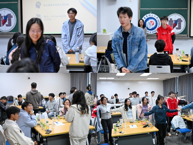曹雅老师围绕肢体语言、语音语调、停顿技巧等关键维度展开分享,强调以肩膀带动动作展现自信、通过抑扬顿挫的表达与巧妙停顿增强感染力,以自然风光、家庭竞赛等具体情境解释站姿、手势、眼神交流等细节对表达效果的影响。同时,结合职场场景,指导学生如何打造吸引人的开场、建立与听众的有效联结,通过实战演练让学生现场打磨自我介绍,讲师团队提供一对一反馈,帮助大家优化表达逻辑与呈现方式。