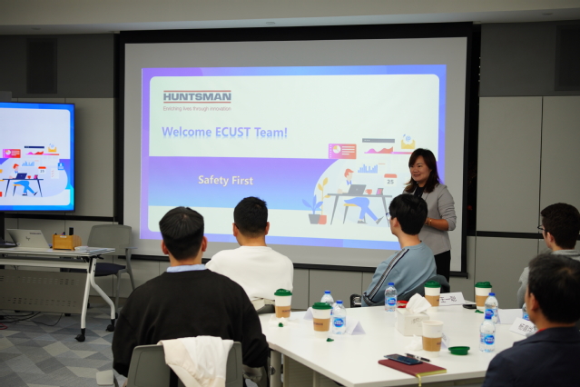 在亨斯迈实习的四名研究生中,有一位已经被正式录用。最后,师生一行参观了公司的研发分析测试实验室和产品展示区。亨斯迈的产品覆盖日常家居、新能源、生态建设、高端制造等多个领域,每一款产品背后都凝聚着化工技术的持续创新与“解决产业痛点、赋能生活升级”的匠心追求。