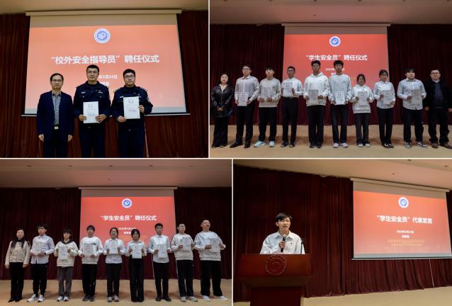 为进一步整合校内外总体国家安全观教育资源,两个学院还特别聘任曹荣和张志荣担任“校外安全指导员”,饶志雄为他们颁发了聘书。同时,两个学院还分别成立了“学生安全员”队伍,由本研班委和学生骨干组成,胡宝林和张娅莉、曹娜为学生代表颁发了聘书。本科生魏政杰代表受聘学生发言,表达了认真履职、发挥朋辈引领作用,做好知识宣传员、信息反馈员和平安校园守护者的决心和信心。